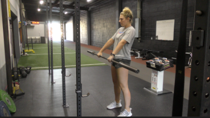 an explosive hip extension (working to extend at the hips), a power shrug (learning to shrug at the shoulders before entering the pull), and finally the high pull (driving the elbows up before entering the catch phase). They must perfect each movement with a loaded bar before moving to a power clean.